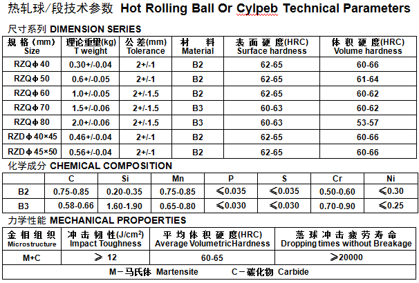 熱軋球/段技術參數(shù)